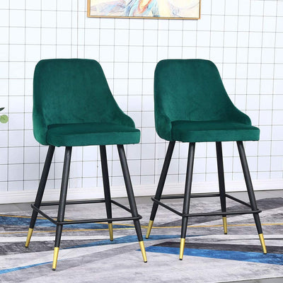 - Velvet Counter Bar Stools - Barstools set of 2 are made of metal legs, padded with softer velvet upholstered back and arm design, high back rest to support the back and waist, rescuing from fatigue! Great touch and texture, very beautiful colors to choose, Retro or Modern, making the style for your home or office!